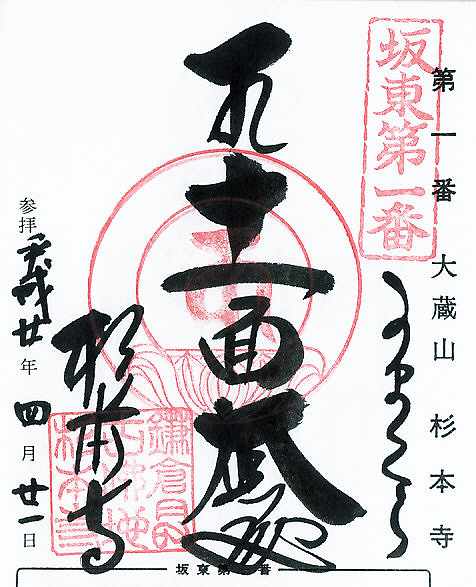 正暦元年庚寅春三月十七日六十五代後白河法皇が来山され、ここを坂東三十三カ所第二番の霊場と定めた。なお、源頼朝が蛭ケ児島にいた頃、文覚上人の勧めで、当時の本尊を厚く信仰し、夢に現われてお告げを蒙ることが屡々あったという。戦乱の折、敗色濃くなってからも、大非の冥助幾度も得て、立直れたというが、なかでも石橋山敗軍のときは、観世音が船人ととなって頼朝を房州洲崎に渡して、忽ち十一面観世音の妙容を顕わして、三浦の方に飛び去ったという。頼朝は御報恩のため御来印を下賜され、治世の間は毎月欠かさず参拝されたという。文治三年正月二十三日には頼朝公の姫が参詣。建久二年子の三月には三浦義澄同六兵衛義村参詣。建久三年巳兎の五月八日後白河法皇四十九日の御仏事のため百僧集まり参詣。この折に南堂を補修する。承元三年五月五日には右大将実朝将軍参詣。寛喜二年十一月十一日、大破せる伽藍再建のため、大僧正院家並び十二院の別当が日夜法要を修行され、そのとき、鎌倉殿の命に依り僧西願に勧進して堂宇を再建、三代盟主三七日昼夜祈念したことが「東鑑」にも記されている。