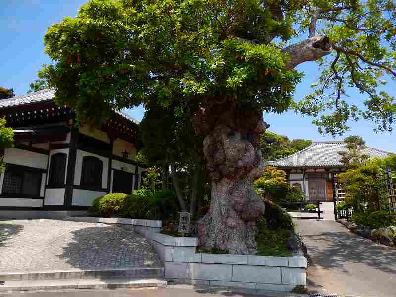 そのまま進むと正面に本堂があり、左手に樹齢七百年と言われる槙の古木がある。境内の周囲には躑躅が植えられ、石仏や石塔が配置されている。