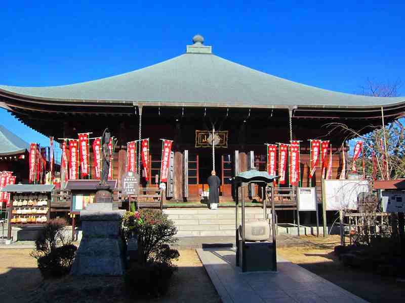 なお、県道沿いには大東文化大学、埼玉県平和資料館などの近代的な建物が立ち並んでいるのに対し、寺と参道周辺には昔ながらの静かな雰囲気が残っている