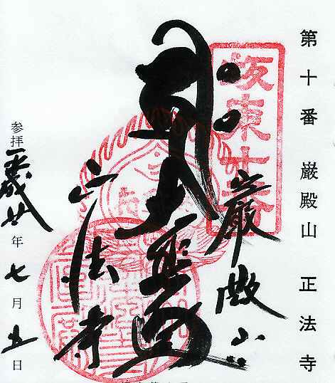 関越自動車道東松山インターから国道407号へ、続いて県道212号線に出て、こども動物公園を目指す。こども動物公園近くの信号を右折れし1キロ弱進む。次に左折れすれば、巌殿山 正法寺行き当たる。