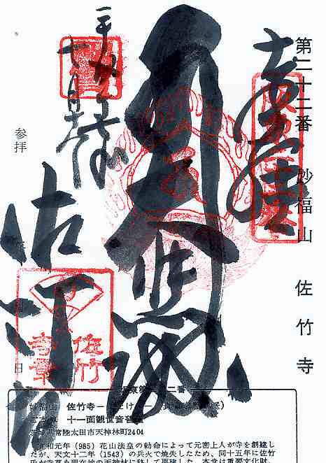 第22番妙福山佐竹寺は茨城県常陸太田市に在って、笠間から常陸太田へ抜ける県道の左側にある。“水戸黄門”で馴染みの西山荘は佐竹寺の少し先に位置し、水戸家歴代の墓所は、更に其の北に位置する瑞龍町にある。