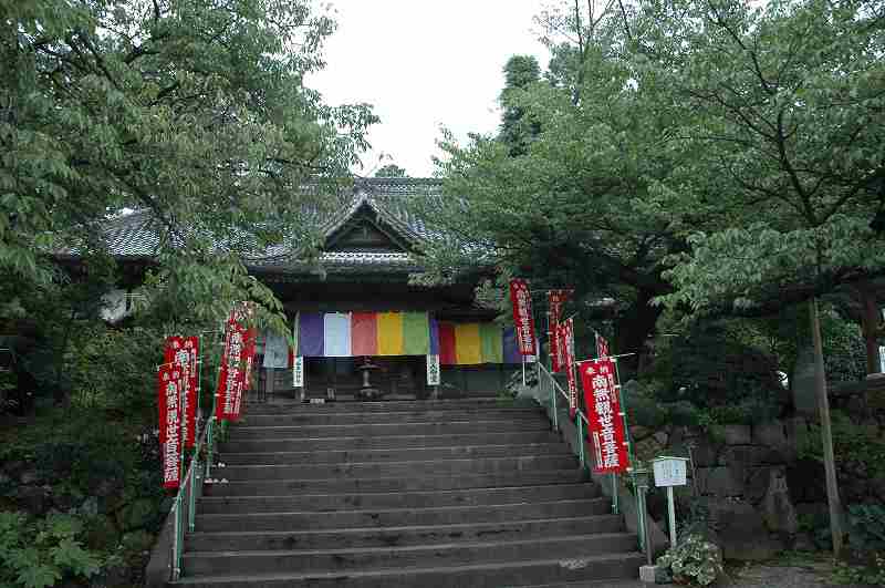 (651)の頃、この地に住む狩人粒浦氏が老翁の啓示によって殺生の前非を悔い、古木にて観音像を剣み、出家して草堂を営みたるが、この札所の開創なりとある。鎌倉初期には、百余坊をかぞえる巨刹となり、霊験日々に新らたかなりしが、藤原時朝によりて堂宇破却の難をうく。時朝その地に居城を築きしが、戦歿の亡霊に悩まされ、改心して宝前に懺悔を行ない、助命を願って観音堂を再営せしという。