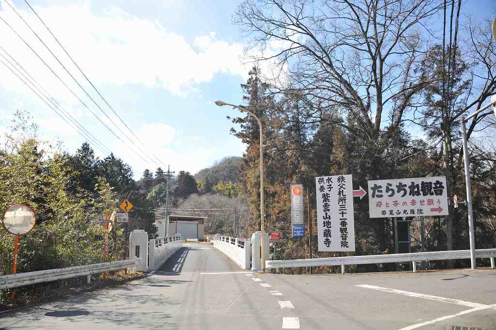 荒川の橋を渡ると、途端に田舎の佇まいと成る。農家の散在する畑地や冬枯れの林を車窓に観て更に進むと、道は次第に平地か ら急峻な山地に到る。