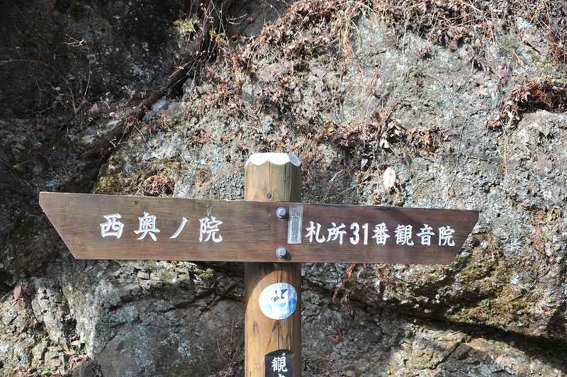 此の寺院へは徒歩山越えの巡礼路も有るらしく、藪の中にも案内標が有った。