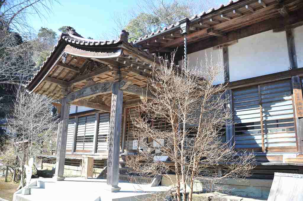 急峻な石段を登り切ると、丘の中腹にある本堂の前に出る。