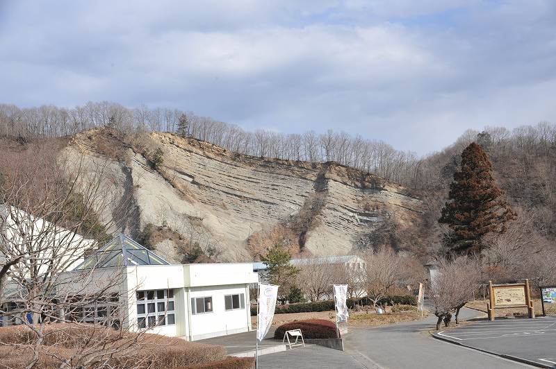 往路 32番から33番へは、左手に山裾を観て走る平坦な行程である。途中に「おがの化石館」の案内が有ったが、差ほど興味がなかったので通り過ぎた。次いで数億年前の地層が目視できる場所の案内が有ったので立ち寄った