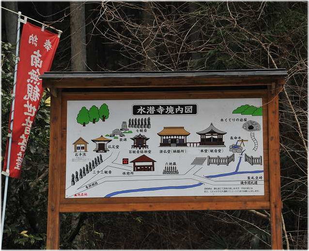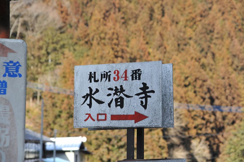 水潜寺は山の中にある。道は平地から幾つもの坂を上り道端の道標に到る。