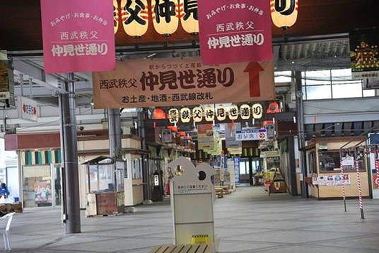 西武秩父駅構内?に来たら土産物店が軒を連ねる。