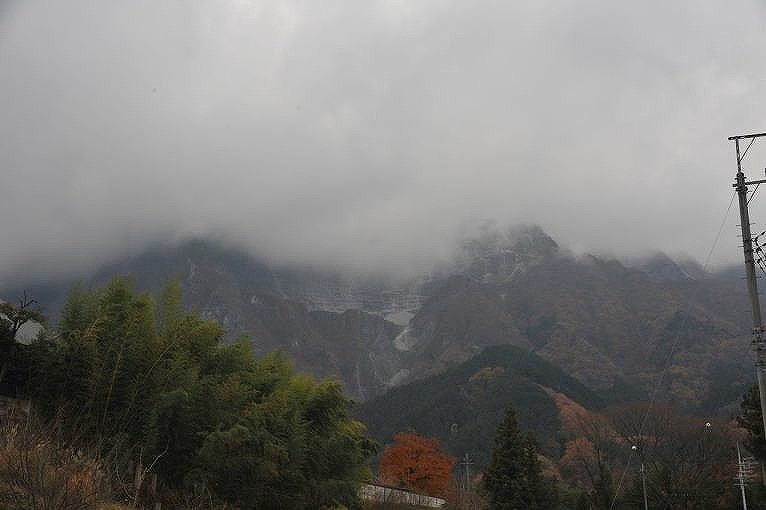 九番明智寺から幹線道路を秩父駅方向に進む。四方が山に囲まれているのだろうか?どちらを望んでも遠くに山影が映る。紅葉真っ盛りだが惜しいかな今日は曇天。