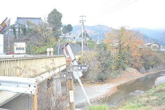 (天狗坂)を下ると、橋(横瀬橋)のたもとにに食堂の看板が見える!「準備中」の下げ札の無いことを祈る。