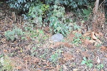 道路脇の藪から、壊れた塔の擬宝珠が枯れ草から頭を出している。更に目を遣ると、近くに台座や本体が散在する。