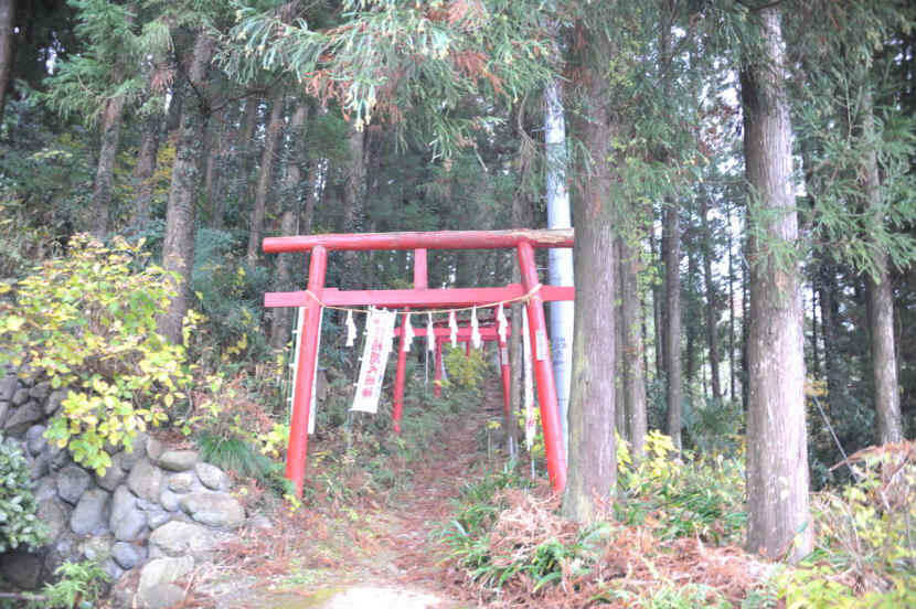 常楽寺側の路を半丁ほど登ると、路の右側に分かれ路が現れ、紅い鳥居が所狭しと続く。紅い鳥居の奥は深く、その先には上之臺稲荷神社があると聞く。