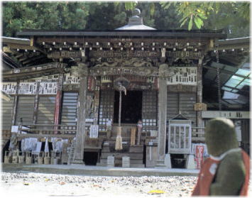 簡素な山門を入ると、平賀源内の原図によって設計されたという本堂があり、内陣の欄間には同じく源内の原図による讃岐志度寺縁起の彫刻が掲げられている。間口十間、奥行き八間、秩父札所のなかで、最も大きな本堂である。