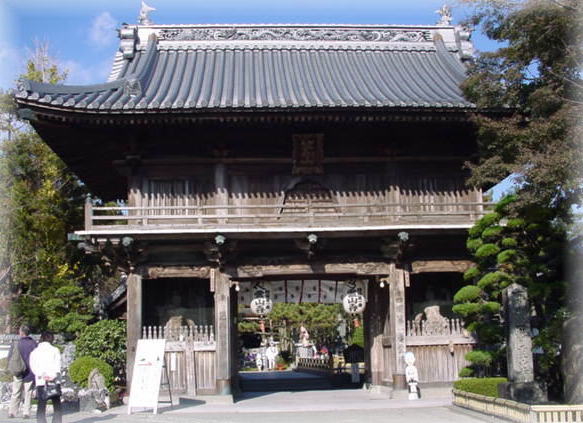 その後は大きな被害もなく現在に至っている。朱塗りの山門は上部が鐘楼になっている“鐘楼門”だが、一階部分が角柱、二階部分が丸柱という変わった造りになっていて、山門からは石を敷きつめた参道が通っていて、正面に本堂、右手に本堂と回廊でつながれた大師堂がある。