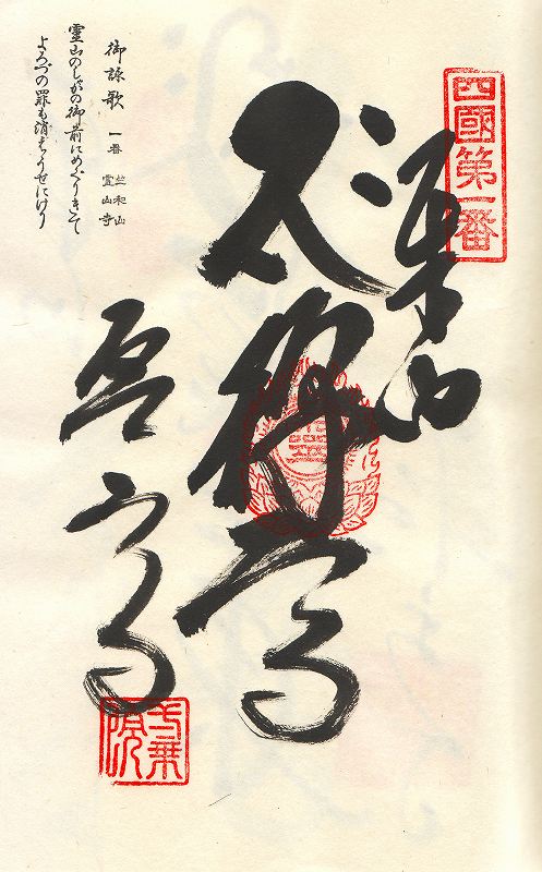 四国八十八ヶ所霊場の全行程はおよそ1460キロ、365里におよぶ。この霊場を札所番号の順に巡拝する遍路には、ここが「発願の寺」、「同行二人」の長い旅となる。縁起によると、聖武天皇