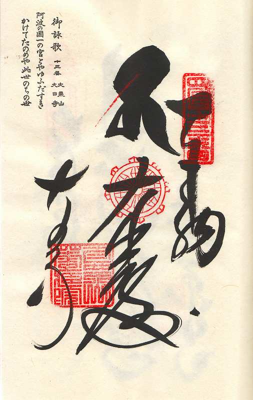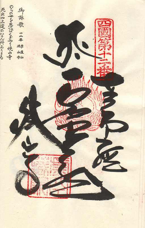 ただし、現在の堂塔は、阿波藩主の手によって再建立されたもの…。なお、この寺には弘法大師の御筆跡を刻印したと伝えられる光明真言の印版を宝蔵してある。