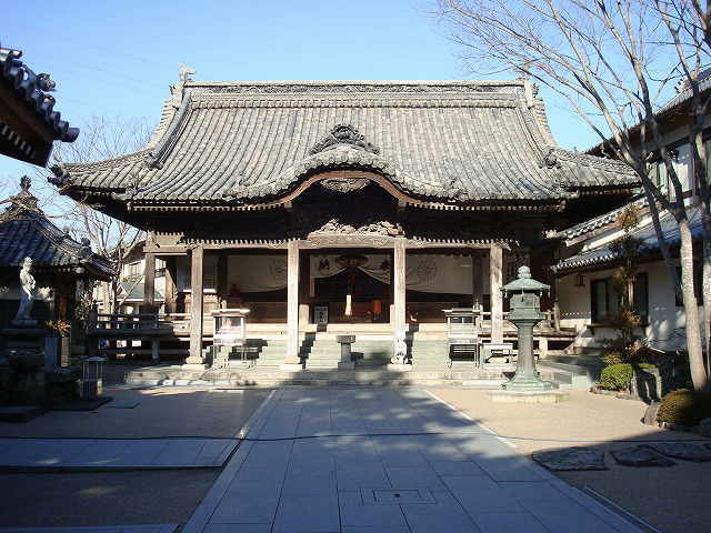 またこの寺も天正の兵火に焼かれて、興亡を重ねていて、門を入ると、左手に本堂、正面に大師堂、本堂の脇手には合掌をしている観音像がある。合掌しているその両手の中に、小さい観音像がある。これは「しあわせ観音」と呼ばれている由。