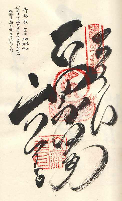 その後の弘仁六年、弘法大師が留錫して、約1.8メートルの大像を刻み、金の仏像を体内に納め、立江寺と命名して十九番札所と定めた。