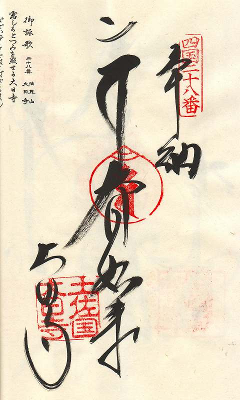再興されたのは明治十七年になってからで、本堂に安置されている本尊・大日如来は四尺八寸二分(約145m)の座像で四国では最大級の大きさである。