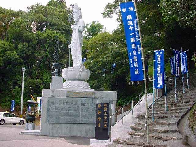 (在位809?23)に奏上、勅願により伽藍を建立、開創したと伝えられる。弘仁13年、大師49歳のころといわれる。岬は、濃緑の樹海と白亜の灯台、それに断崖に砕ける波涛、観世音の浄土を連想させ、自然の大庭園に圧倒させられるのだが、ここにたどり着く遍路の旅もまた壮絶を極める。