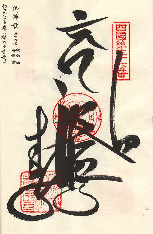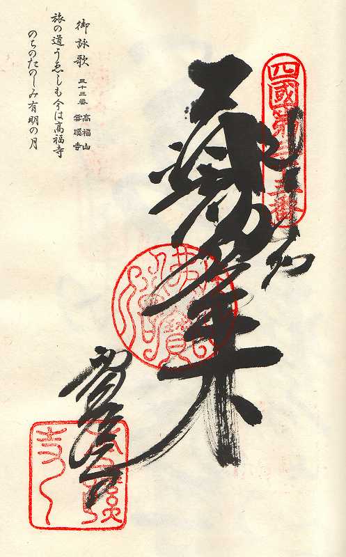 53 須賀山 圓明寺 54 近見山 延命寺 55 別宮山 南光坊 56 金輪山 泰山寺 57 府頭山 栄福寺 58 作礼山 仙遊寺 59 金光山 国分寺 60 石?山 横峰寺 61 栴檀山 香園寺 62 天養山 宝寿寺 63 密教山 吉祥寺 64 石?山 前神寺 65 由霊山 三角寺 |