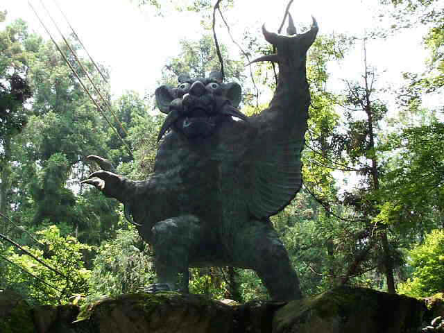 牛鬼の像は駐車場左側にある。今から400年前、この山に牛鬼という怪獣が出現し、人畜を害した。困った人々は弓の名千山田蔵人高清に退治を頼み、高清は当寺の千手観音に願をかけ、見事と牛鬼を射止めたという。