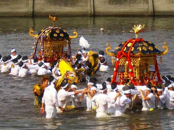 水浴びする御輿
