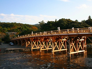 結界の鳥居を潜り、俗界から神域に第一歩を標す。次いで五十鈴川を渡る。