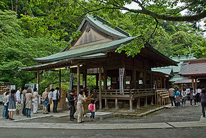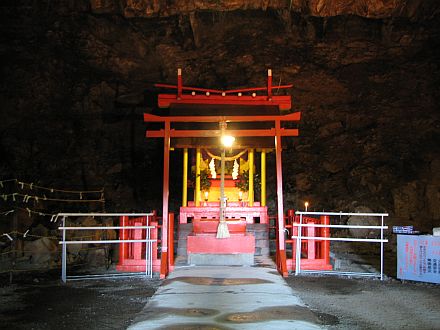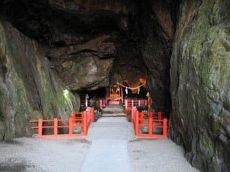 この神社は、日南線・油津駅の東1.5km程の辺り、広渡川の河口に架かる広渡大橋の南に鎮座している。薄暗い洞窟の奥に社殿が建っていて、神秘的な雰囲気の中静かに参拝できる。