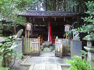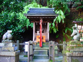 京都へ行った折「哲学の道」から、案内に従って脇道へはいると、住宅地の中に鳥居があり、小さな社がある。
