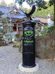 ☆ 本宮大社には昔懐かしい丸型ポストが設置されていて、そのポストは見慣れた赤いポストではなく、黒くて上に八咫烏の