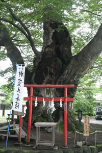 寛弘7年(1011)県令・石部少将道秀、堂家左京太夫憲照、石塚丹後頼春諸氏により社殿が造営され、拝殿前の峰張桜(市指定天然記念物)は、この時に植えられたと伝えられる。