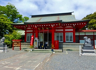 鹽竈神社とは趣を別にし、本殿は黒漆塗り・拝殿は朱漆塗りの極彩色社殿となっており、又全額国費を以て造られた最後の神社とも言われている。