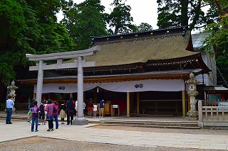 御祭神は少彦名命で、配祀神が大名持命になります。これは大洗に大己貴命を祀り、酒列に少彦名命を分祭したものと考えられている。延喜式神名帳に記載される式内社で名神大社に列し、「酒列磯前薬師菩薩神社」の社名を賜り、明治十八年に国幣中社に列格、太平洋戦争後には別表神社に定められます。