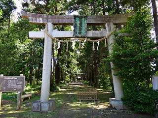 参道は国道125号現道に面しているが、境内は奥まった場所にあるため発見しにくく、巨樹林立する樹叢に、長大な参道が通り、奥部に社殿を構えていて、社務所や目立った境内社はなく、樹叢と社殿による素朴な構図を楽しむことができる。