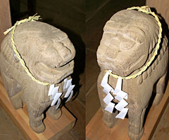 珍しい木製の狛犬