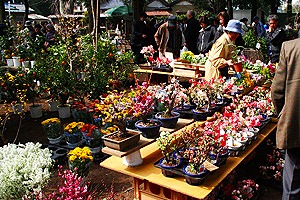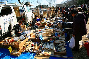 毎年初午には、昔ながらの道具市と植木市が立つ