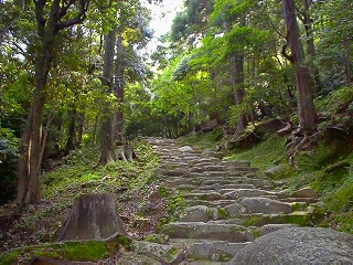 山上へは、源頼朝が寄進したと伝えられる、急勾配の鎌倉積み石段538段を登らなければならない。