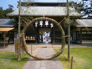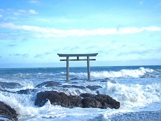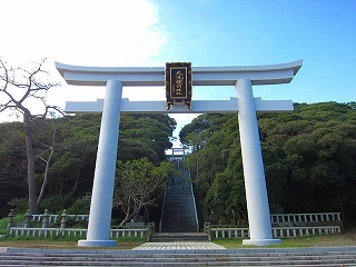大国主命の別名。国造りを行うため、境内前方の岬の岩 礁に降臨したとされる。